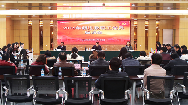 12月6日下午,2016年新進教職工黨員座談會在大學城校區博雅樓503會議室召開。學校黨委書記曾禮,副書記龔燕,2016年新進教職工黨員及相關基層黨組織主要負責人,黨政辦、組織部、宣傳部、教務處、人事處主要負責人參加座談會。座談會由副校長孔春陽同志主持。