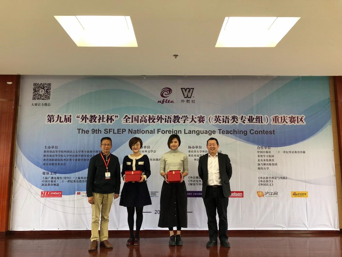 10月13-14日,第九屆“外教社杯”全國高校外語教學(xué)大賽(英語類專業(yè)組)重慶賽區(qū)復(fù)賽及決賽于西南大學(xué)外國語學(xué)院舉行。我校外國語學(xué)院青年教師刁玉老師表現(xiàn)突出,榮獲重慶賽區(qū)“英語類專業(yè)組”決賽一等獎(jiǎng)。