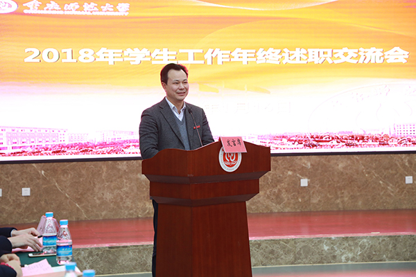 最后,校黨委書記曾禮教授作總結講話。曾書記高度肯定了此次述職交流會,強調通過述職交流會的形式不僅可以讓各學院認真梳理總結工作,并能在互相學習中共同進步。他從三個方面作了強調:一是要認清形勢,振奮精神。他談到當前黨中央、市政府、學校都高度重視高校思想政治工作,現在的工作形勢一片大好,輔導員們要增強定力,立足崗位,擼起袖子加油干;二是要加強學習,增強“四個意識”,堅定“四個自信”。他特別強調理論學習的重要性,囑托學生工作隊伍要堅持讀原著、學原文、悟原理,以馬克思主義理論筑牢工作之基,不斷自我完善與提升,更好成為學生的引路人;三是要開拓創新,工作落細落小。他強調隨著我國社會主要矛盾的變化,新時代下學生特點的變化也給我們的工作提出了新的要求和挑戰,學生工作要作風扎實、接地氣,與時俱進、有創新,才能真正為黨和國家培養德智體美勞全面發展的社會主義建設者和接班人作出新的更大的貢獻。