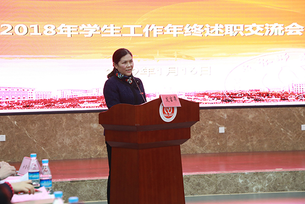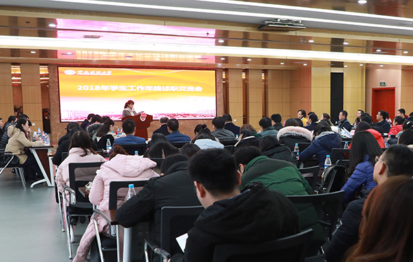 2019年1月16日,我校2018年度學生工作年終述職交流會在博雅樓503室舉行。學校黨委書記曾禮教授,黨委副書記、校長孟東方教授,黨委副書記龔燕教授,副校長楊如安教授,副校長陸遠權教授特邀出席,學生處、招就處、保衛處、校團委等職能部門負責人,各學院分管學生工作副書記、輔導員、班主任共計130余人參加。會議由校黨委副書記龔燕教授主持。