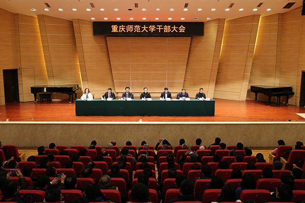 2018年12月29日下午,我校在校友會堂音樂廳召開干部大會。會上,市委組織部干部三處處長溫萬光宣讀了重慶市委對重慶師范大學主要領導的任免決定:孟東方同志任重慶師范大學黨委副書記、校長;因年齡原因,周澤揚同志不再擔任重慶師范大學黨委副書記、校長職務。