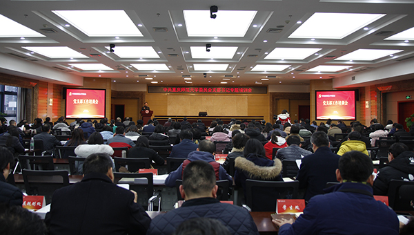 2018年12月25日下午,我校在博雅樓504會議室舉辦黨支部書記專題培訓。全校二級黨組織書記、副書記、支部書記以及教學單位黨組織組織員共計230余人參加培訓,黨委組織部部長趙駿主持培訓會。