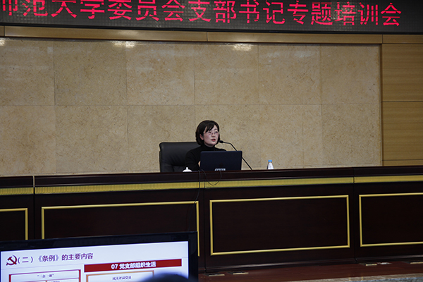此次培訓以學習貫徹《中國共產黨支部工作條例(試行)》為主題,黨委組織部副部長王麗萍在工作培訓中堅持問題導向,結合支部工作實務,詳細解讀了《中國共產黨支部工作條例(試行)》的制訂背景、意義,框架結構和主要精神。趙駿部長對黨支部今后的工作提出,要深入貫徹落實全國全市組織工作會議精神,要抓緊學習貫徹中央黨支部工作條例和學校教師黨支部、學生黨支部建設標準,要做好近期黨支部工作總結和黨支部書記抓黨建工作述職。培訓會上,黨委組織部為每位基層組織書記配備了自編的《基層組織工作手冊》《組織干部工作文件選編》,作為支部工作案頭書,輔助支部書記做好基層黨建工作,強化支部標準化、規范化建設,提升組織力。