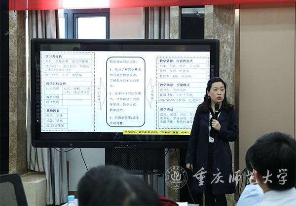 陳圓副教授通過案例引導教師們探討以學為中心教學設計和常規教學設計的異同與效果,以及如何激發起學生學習興趣和潛能,把沉默的課堂變成碰撞思想、啟迪智慧的互動場所。