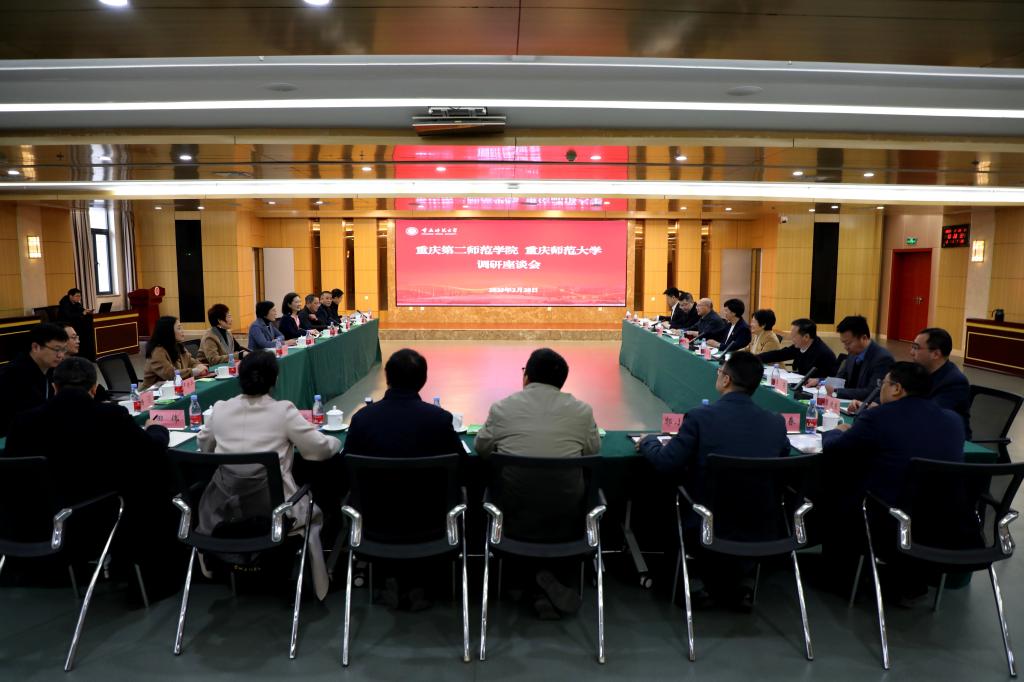 2月28日上午,重慶第二師范學(xué)院黨委書(shū)記黃晏一行來(lái)我校調(diào)研,學(xué)校黨委書(shū)記張艷陪同參觀(guān)學(xué)校校史館,并主持召開(kāi)座談會(huì)。重慶第二師范學(xué)院領(lǐng)導(dǎo)班子成員及相關(guān)職能部門(mén)負(fù)責(zé)人,我校黨委副書(shū)記周學(xué)馨,黨委常委、副校長(zhǎng)楊如安、孟小軍,副校長(zhǎng)賈韜及相關(guān)職能部門(mén)負(fù)責(zé)人參加座談交流。