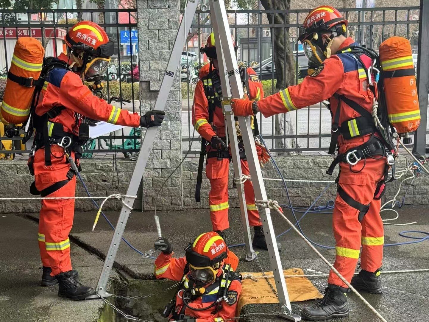 在消防技能展示環(huán)節(jié)中,消防員們快速疊出“豆腐塊”被褥,進(jìn)行井下救援演練和模擬火災(zāi)實(shí)戰(zhàn),利用煙霧機(jī)制造火場(chǎng)環(huán)境,演示快速破拆、傷員轉(zhuǎn)移等流程。孩子們?cè)谥笇?dǎo)下手持消防水槍撲滅“火源”,在實(shí)際操作中強(qiáng)化了滅火技能。