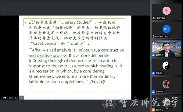 11月2日晚,四川外國語大學(xué)校長董洪川應(yīng)邀為我校外國語學(xué)院師生在線上開展了一場以“經(jīng)典與大學(xué)”為題的學(xué)術(shù)講座。講座由副院長彭康洲主持,外國語學(xué)院全體師生參與學(xué)習(xí)。