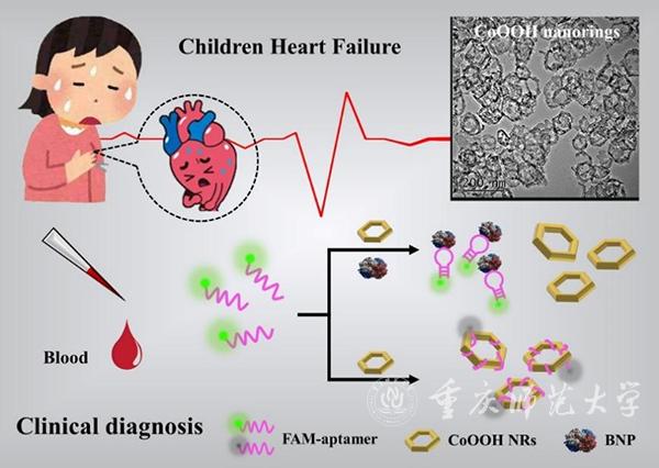 相關(guān)研究成果近期以題為“Defect-rich CoOOH nanorings: a biocompatible and cost-efficientmaterial for clinical diagnosis of children heart failure”發(fā)表于國(guó)際權(quán)威期刊Chemical Engineering Journal (影響因子13.273)。該研究工作得到了國(guó)家自然科學(xué)基金、重慶市委組織部高層次人才特支計(jì)劃和英才計(jì)劃等項(xiàng)目的資助。