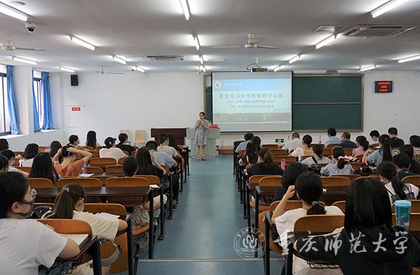 為培養(yǎng)我校2017級(jí)歷史學(xué)專業(yè)校內(nèi)實(shí)習(xí)學(xué)生教育教學(xué)管理能力,歷史與社會(huì)學(xué)院于2020年6月5日下午在特教樓2315教室舉辦了中學(xué)教育教學(xué)管理講座。講座由學(xué)院協(xié)作育人合作單位--重慶天星橋中學(xué)教務(wù)主任劉莉老師主講,我校歷社學(xué)院歷史系副主任汪榮教授主持,2017級(jí)和2018級(jí)歷史學(xué)專業(yè)同學(xué)以及指導(dǎo)教師參加了本次講座。