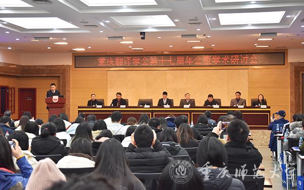12月28日,由重慶翻譯學會主辦、我校外國語學院承辦、上海文化貿易語言服務基地協辦的重慶翻譯學會第十七屆年會暨學術研討會在我校博雅樓召開,我校外國語學院院長吳顯友主持會議。中國翻譯協會副會長兼秘書長、全國翻譯研究生專業學位(MTI)教學指導委員會主任委員黃友義,全國翻譯研究生專業學位(MTI)教學指導委員會副主任委員、廣東外語外貿大學博士生導師仲偉合,湖北省楚天學者、特聘教授湯富華,廣東外語外貿大學云山杰出學者、博士生導師藍紅軍,中譯語通科技股份有限公司副總裁張曉丹,成都優譯信息有限公司首席增長官(CGO)彭超成等人出席本次年會,市內外各高校的350余名師生參會。