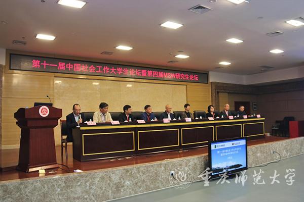 據悉,中國社會工作教育協會副會長、貴州大學公共管理學院黨委書記莊勇教授,中國社會工作教育協會副會長、南京大學博導、教育部MSW教指委委員彭華民教授,中國社會工作教育協會前任副會長、云南大學錢寧教授,重慶市沙坪壩區民政局局長賈小燕,中國社會工作教育協會辦公室主任秦小峰,我校歷史與社會學院黨委書記周焱等來自市內外十多位專家、學者和領導出席了開幕儀式。