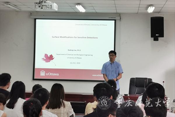 7月3日上午,加拿大渥太華大學-卡爾頓大學生物醫學工程研究所所長、渥太華大學博生生導師曹旭東教授做客我校生命科學學院,帶來了一場題為“Surface Modifications for Sensitive Detection”的學術報告。生命科學學院副院長樂濤教授主持講座,相關專業教師、研究生及本科生參加。