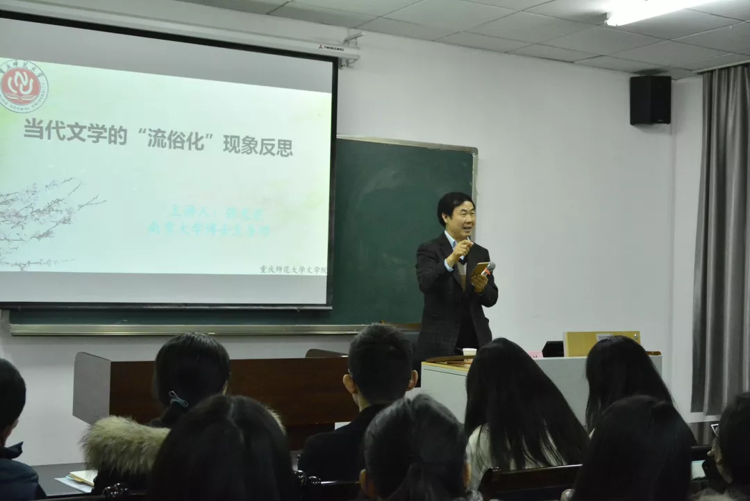 12月21日晚上,南京大學文學院教授、博士生導師張光芒教授應邀于文學院匯賢樓205室為文學院師生做了題為《當代文學的“流俗化”現象反思》的講座。講座由文學院副院長李文平教授主持,楊華麗等老師和多名相關專業的學生到場聆聽。