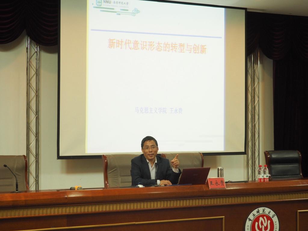 2018年10月26日上午,教育部“長江學(xué)者獎勵計劃”特聘教授、南京師范大學(xué)二級教授、博士生導(dǎo)師王永貴應(yīng)馬克思主義學(xué)院邀請,在弘德樓凱撒報告廳作了一場題為“新時代意識形態(tài)的轉(zhuǎn)型與創(chuàng)新”的學(xué)術(shù)講座。馬克思主義學(xué)院教師和2017級、2018級全體研究生、部分本科生聆聽了講座。講座由馬克思主義學(xué)院院長陳洪教授主持。