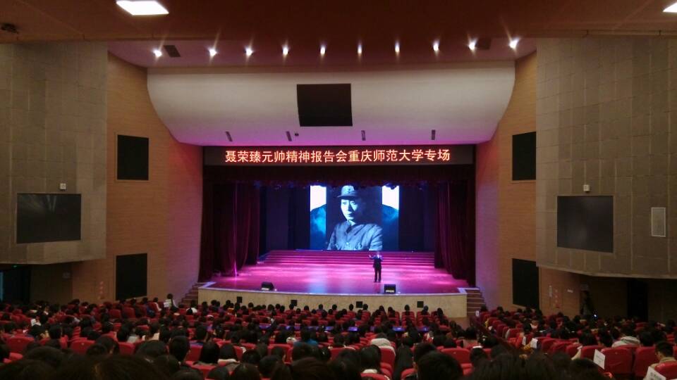 下午,聶榮臻元帥精神巡展巡講小分隊走進重慶師范大學,在校友會堂演出廳為1000余名師生帶來精彩的聶帥精神報告。報告會由校大學生思想政治工作領導小組主辦,黨委學生工作部和歷史與社會學院承辦,學生工作部部長、學生處處長張明志主持。