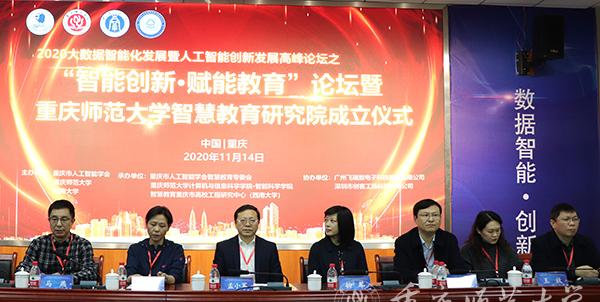 2020年11月14日,由重慶市人工智能學(xué)會(huì)、重慶師范大學(xué)和西南大學(xué)主辦,重慶市人工智能學(xué)會(huì)智慧教育專委會(huì)承辦的2020 “智能創(chuàng)新·賦能教育”論壇暨重慶師范大學(xué)智慧教育研究院成立儀式在我校成功舉行。本次論壇采用線上線下結(jié)合的方式開展,有來自高校、科研機(jī)構(gòu)、中小學(xué)、行業(yè)企業(yè)的200余名代表參加了現(xiàn)場(chǎng)活動(dòng);有1000余人參加了線上活動(dòng)。