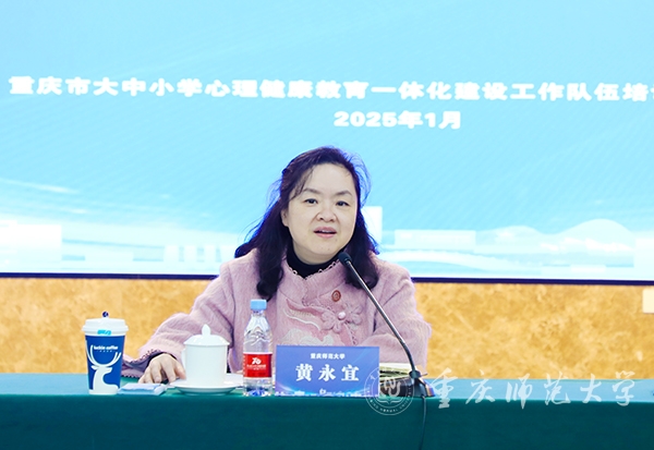 黃永宜在致辭中對各兄弟院校及中小學(xué)心理育人骨干代表的到來表示熱烈歡迎,對支持學(xué)校心理育人工作的各職能部門領(lǐng)導(dǎo)、專家教授以及同學(xué)們表示誠摯感謝,并詳細(xì)介紹了學(xué)校的辦學(xué)歷史和辦學(xué)特色以及在心理育人中所取得的成果。她指出,隨著社會生活節(jié)奏的不斷加快,青少年群體心理壓力來源顯著增多,推動大中小學(xué)心理健康教育一體化平臺建設(shè)顯得尤為迫切與必要。學(xué)校歷來高度重視學(xué)生心理健康教育工作,充分發(fā)揮重慶市大中小學(xué)心理健康教育一體化建設(shè)工作隊(duì)伍培訓(xùn)研修基地示范與輻射效應(yīng),竭力用大學(xué)的“大手”牽起中小學(xué)的“小手”,貫通大中小學(xué)心理健康教育一體化建設(shè)。未來,我校將繼續(xù)堅(jiān)持問題導(dǎo)向與需求導(dǎo)向,整合各部門、各學(xué)科資源,共同打造優(yōu)質(zhì)的心理健康教育微專業(yè),為中小學(xué)培養(yǎng)更多懂心理健康教育的師資隊(duì)伍,推動重慶市大中小學(xué)心理健康教育一體化創(chuàng)新發(fā)展。