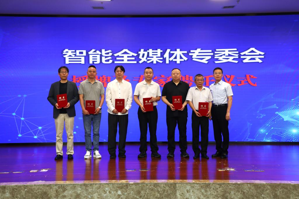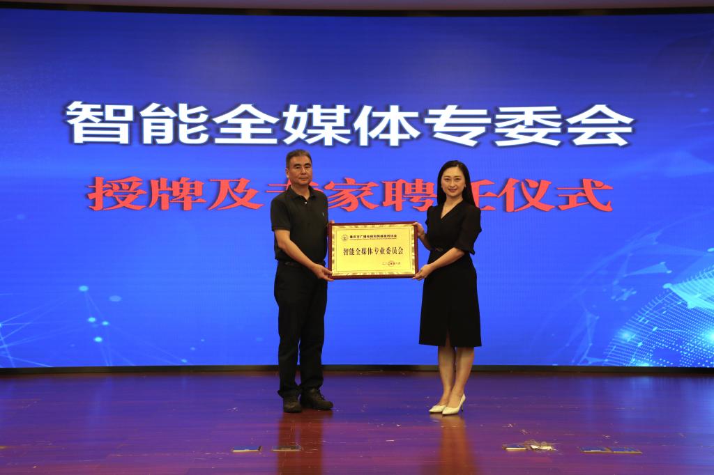 重慶市廣播電視和網(wǎng)絡(luò)視聽協(xié)會會長江衛(wèi)寧為智能全媒體專委會授牌并為專家頒發(fā)證書。