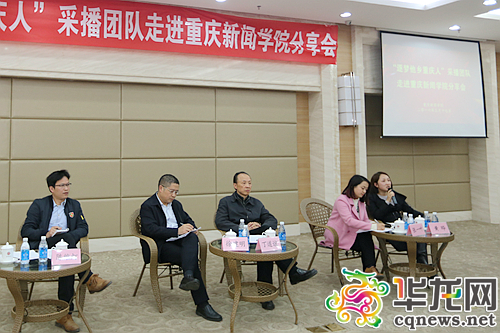 嘉賓的講述結束后,分享會進入互動環節。除了市委宣傳部副部長張永才、重慶廣電集團副總裁丁道誼,市委外宣辦對外新聞處處長徐建明、華龍網集團總編輯助理張一葉、重慶電視臺電視新聞中心副總監湯健萍、重慶日報記者陳維燈、重慶晨報記者黃燁也作為互動環節的嘉賓回答了同學們的積極提問。