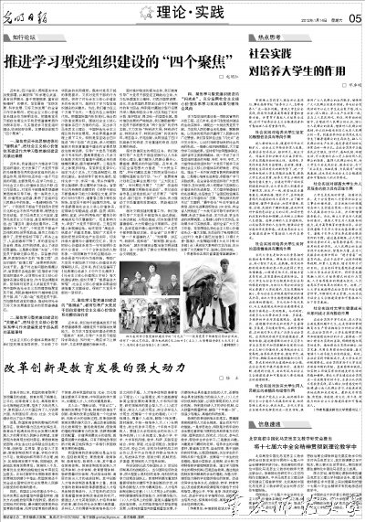 2012年1月14日,《光明日報》在第五版《理論·實踐》上登載了我校黨委書記鄧卓明教授的理論文章《社會實踐對培養大學生的作用》。全文如下: