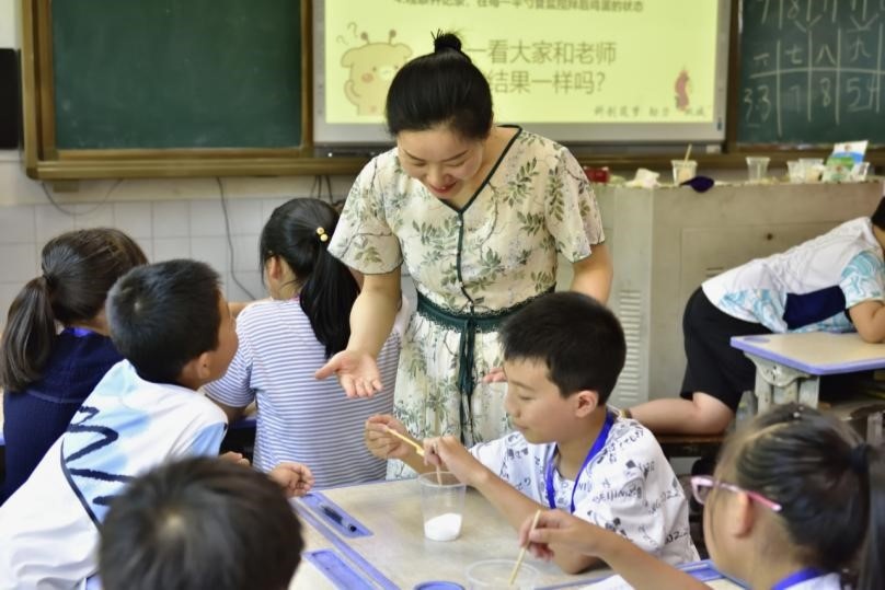 王劍指導學生完成“漂浮的雞蛋”實驗(央廣網發 受訪者供圖)