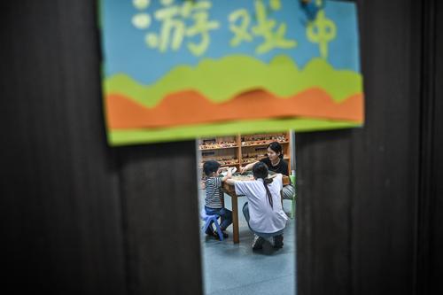 ▲5月26日,重慶師范大學(xué)兒童智能發(fā)展研究中心,大學(xué)生指導(dǎo)孩子們做游戲。記者 劉力 攝/視覺(jué)重慶