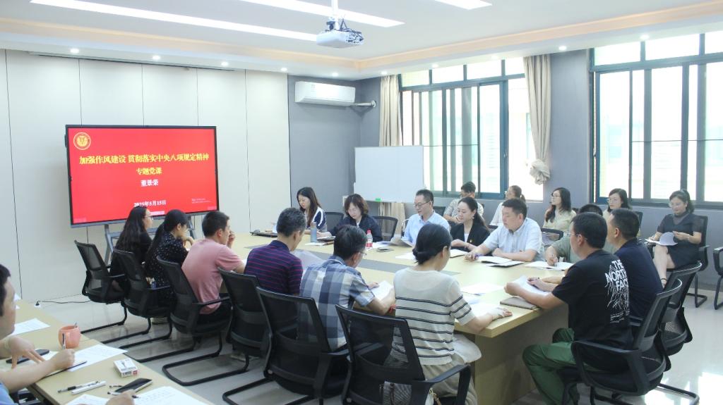 董景榮結合高校、學院發展實際案例,從“嚴守紀律紅線”“強化責任擔當”“踐行群眾路線”等方面展開講授。他強調,作風建設是黨的建設的永恒課題,高校黨員及黨員干部要始終保持政治清醒,將中央八項規定精神轉化為推動學院高質量發展的行動自覺。還特別指出,當前高校作風建設需聚焦學術生態凈化、服務師生提質增效、經費使用規范透明等關鍵領域,要求黨員干部以“刀刃向內”的勇氣推進自我革命。